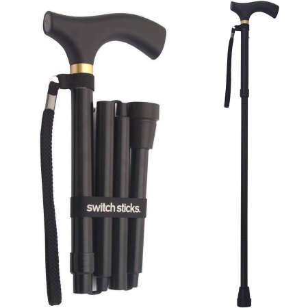 Mabis Healthcare Folding Cane Switch Sticks® Aluminum 32 to 37 Inch Height Black - Each - 502-2000-0000-EA