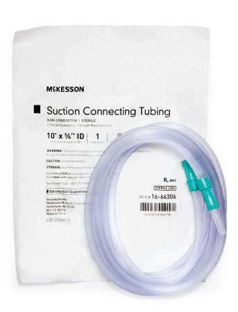 McKesson Suction Connector Tubing McKesson 10 Foot Length 0.25 Inch I.D. Sterile Female / Male Connector Clear Ribbed OT Surface PVC - Each - 16-66306-EA
