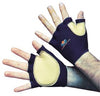 - Lycra® base with viscoelastic polymer palm pad and web covered with grain leather
