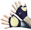 - Lycra® base with viscoelastic polymer palm pad and web covered with grain leather