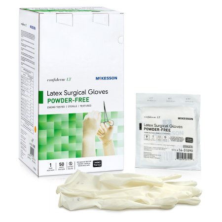 McKesson Surgical Glove Confiderm® LT Size 9 Sterile Latex Standard Cuff Length Fully Textured Ivory Chemo Tested - Box of 50 - 14-31090-BX