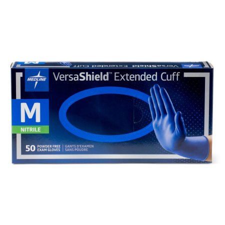 Medline Exam Glove VersaShield™ Medium NonSterile Nitrile Extended Cuff Length Textured Fingertips Blue Chemo Tested / Fentanyl Tested - Case of 500 - VS711M-CS