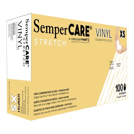Sempermed USA Exam Glove SemperCare® Vinyl X-Small NonSterile Vinyl Standard Cuff Length Smooth Ivory Not Rated - Case of 1000 - SCVNP101-CS