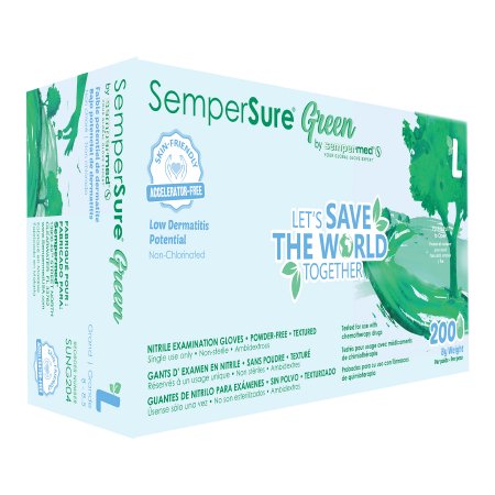 Sempermed USA Exam Glove SemperSure™ Large NonSterile Nitrile Standard Cuff Length Textured Fingertips Green Chemo Tested - Case of 2000 - SUNG204-CS