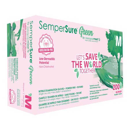 Sempermed USA Exam Glove SemperSure™ Medium NonSterile Nitrile Standard Cuff Length Textured Fingertips Green Chemo Tested - Case of 2000 - SUNG203-CS