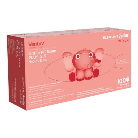 Ventyv Exam Glove Ventyv® Plus 2.5 ELEPHANT JUNIOR Medium NonSterile Nitrile Standard Cuff Length Textured Fingertips Violet Chemo Tested - Case of 2000 - 10320110-CS