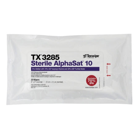 Fisher Scientific Texwipe™ Alpha™ 10 Surface Disinfectant Cleaner Premoistened Cleanroom Manual Pull Wipe 20 Count Soft Pack Alcohol Scent Sterile - Pack of 20 - 19165653-PK