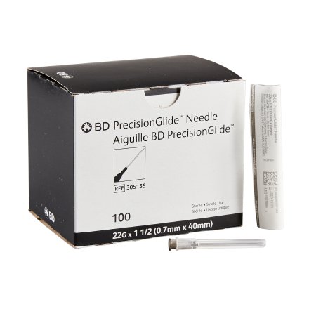 BD Hypodermic Needle PrecisionGlide™ 1-1/2 Inch Length 22 Gauge Regular Wall Without Safety - Case of 1000 - 305156-CS