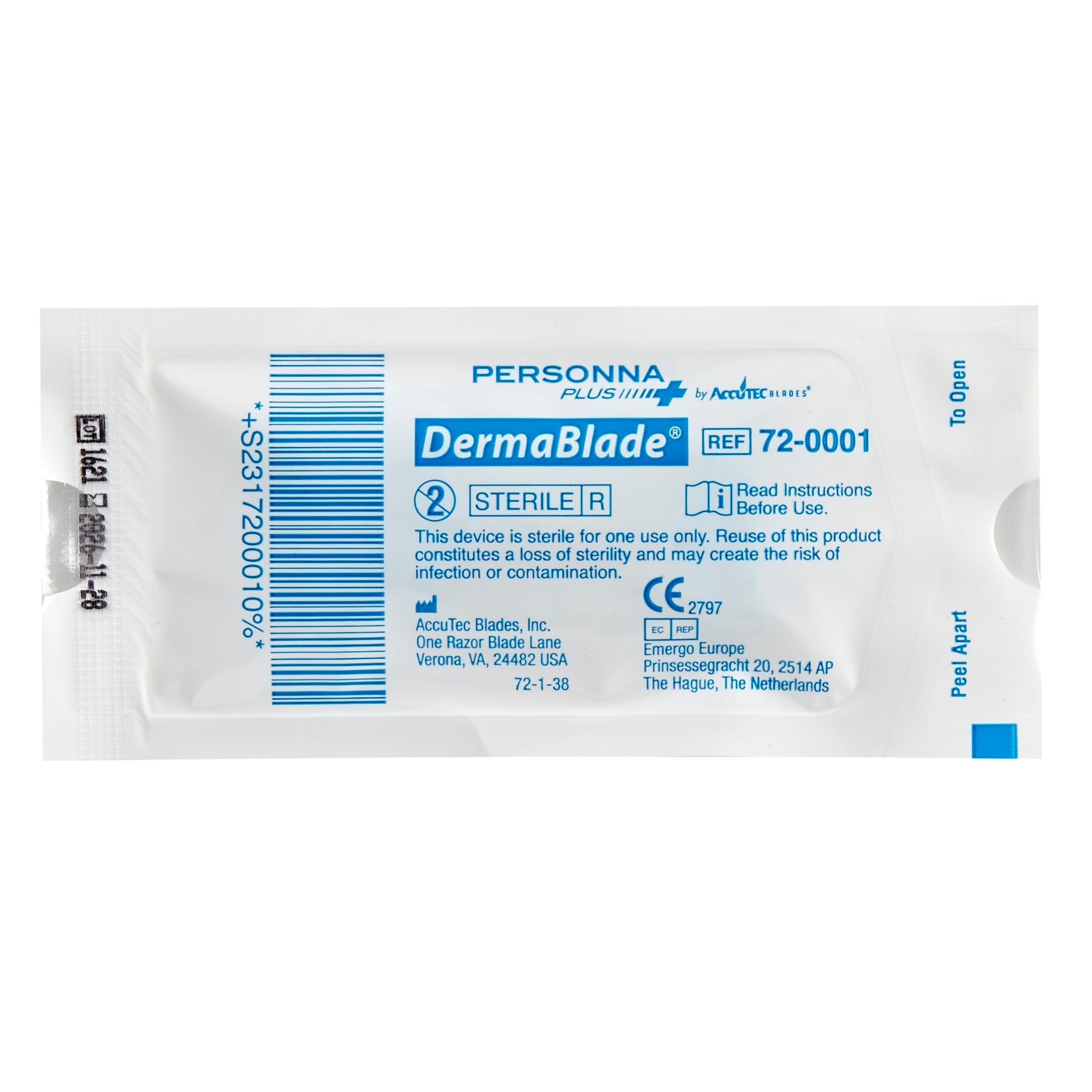 AccuTec Blades Shave Biopsy Blade DermaBlade® Coated Stainless Steel Sterile Disposable Individually Wrapped - Each - 72-0001-0000-EA