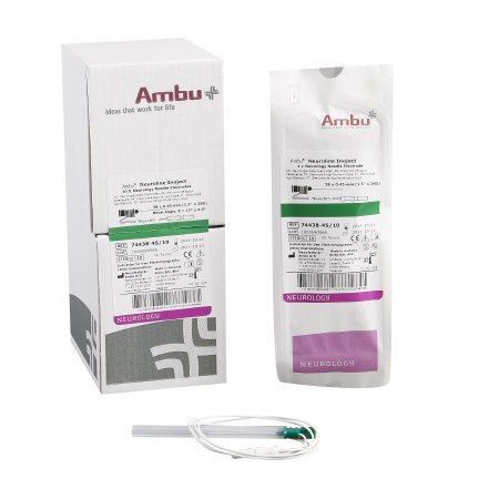 Ambu EMG Needle Electrode with Leadwire Ambu® Neuroline Inoject 26 Gauge X 1-1/2 Inch Length X 30 Inch Lead Length Coated Stainless Steel Sterile Sharp Beveled Tip Disposable - Pack of 10 - 74438-45/10-PK