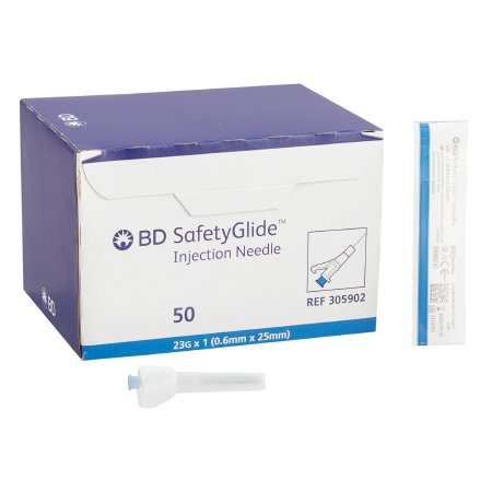 BD Safety Hypodermic Needle SafetyGlide™ 1 Inch Length 23 Gauge Regular Wall Sliding Safety Needle - Box of 50 - 305902-BX