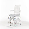 The Aquatec Ocean Ergo Shower and Commode Chair with Collection Pan, Lid and Pan Support Guide Rail, features ergonomic, height-adjustable swing-away armrests and footrests and angle-adjustable flip-up textured footplates with heel loops for security. Footrest height, seat height and footplate angle easily adjustable without tools for personalized fit. Innovative ergonomic seat encourages a more upright position for enhanced comfort and independence. Easily maneuvered in small spaces as well as allowing for a better fit over standard toilets for independent personal care.