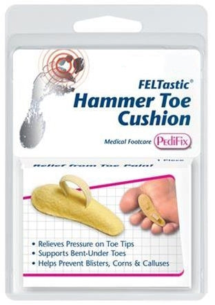 - Soft, felt-covered pad supports bent-under hammer, claw, mallet, and arthritic toes